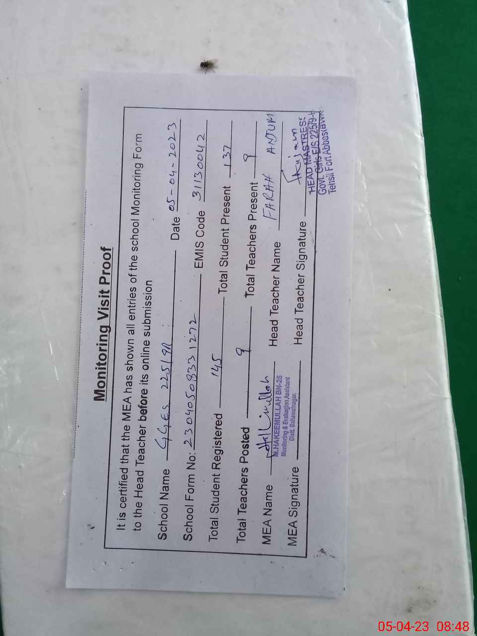 | EMIS Code: 31130042 | Name of School: GGES CHAK NO 225/9-R | |||