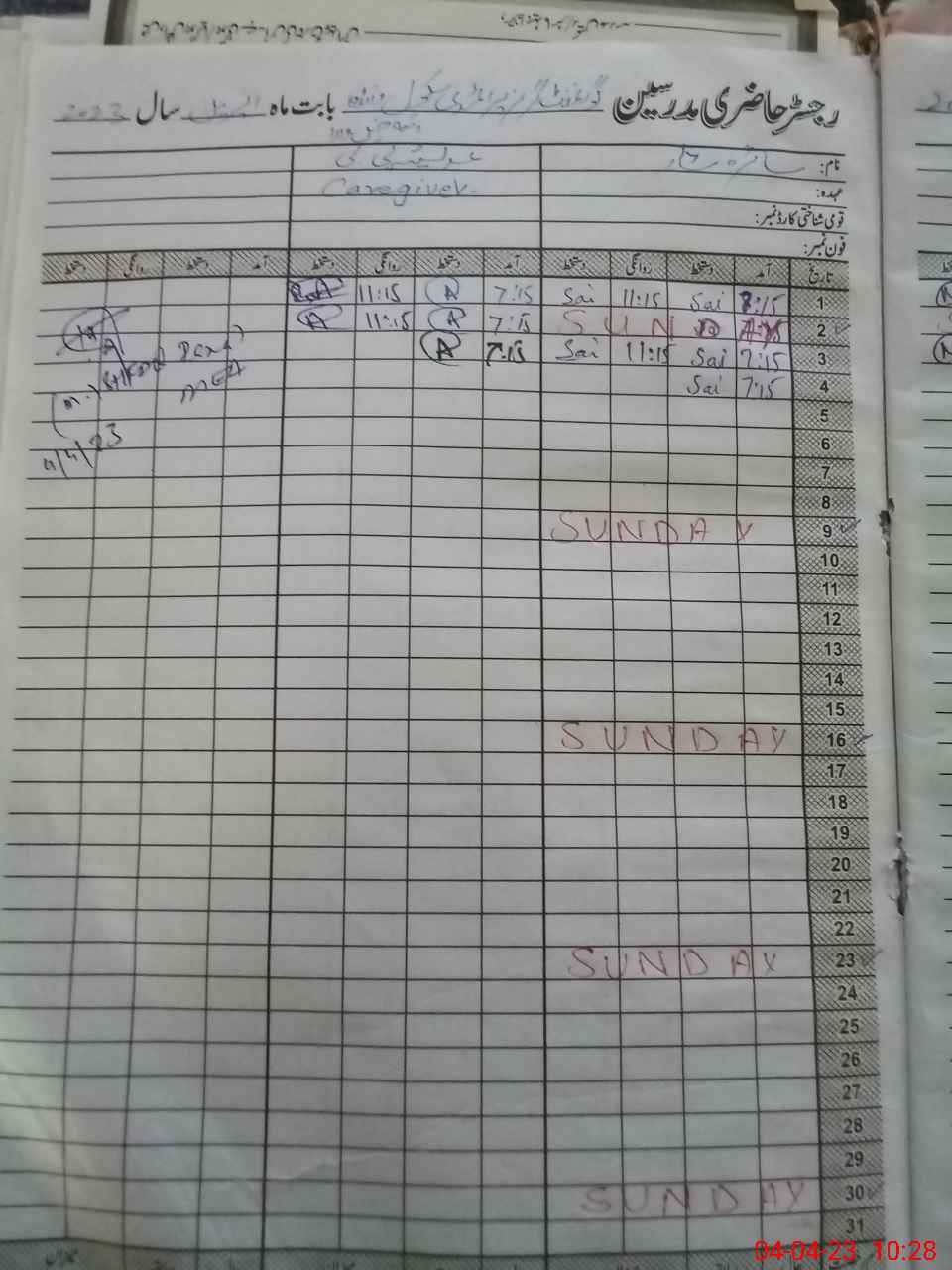 | CNIC | Full Name | Designation | R/C | Absence During Last Calender Month |