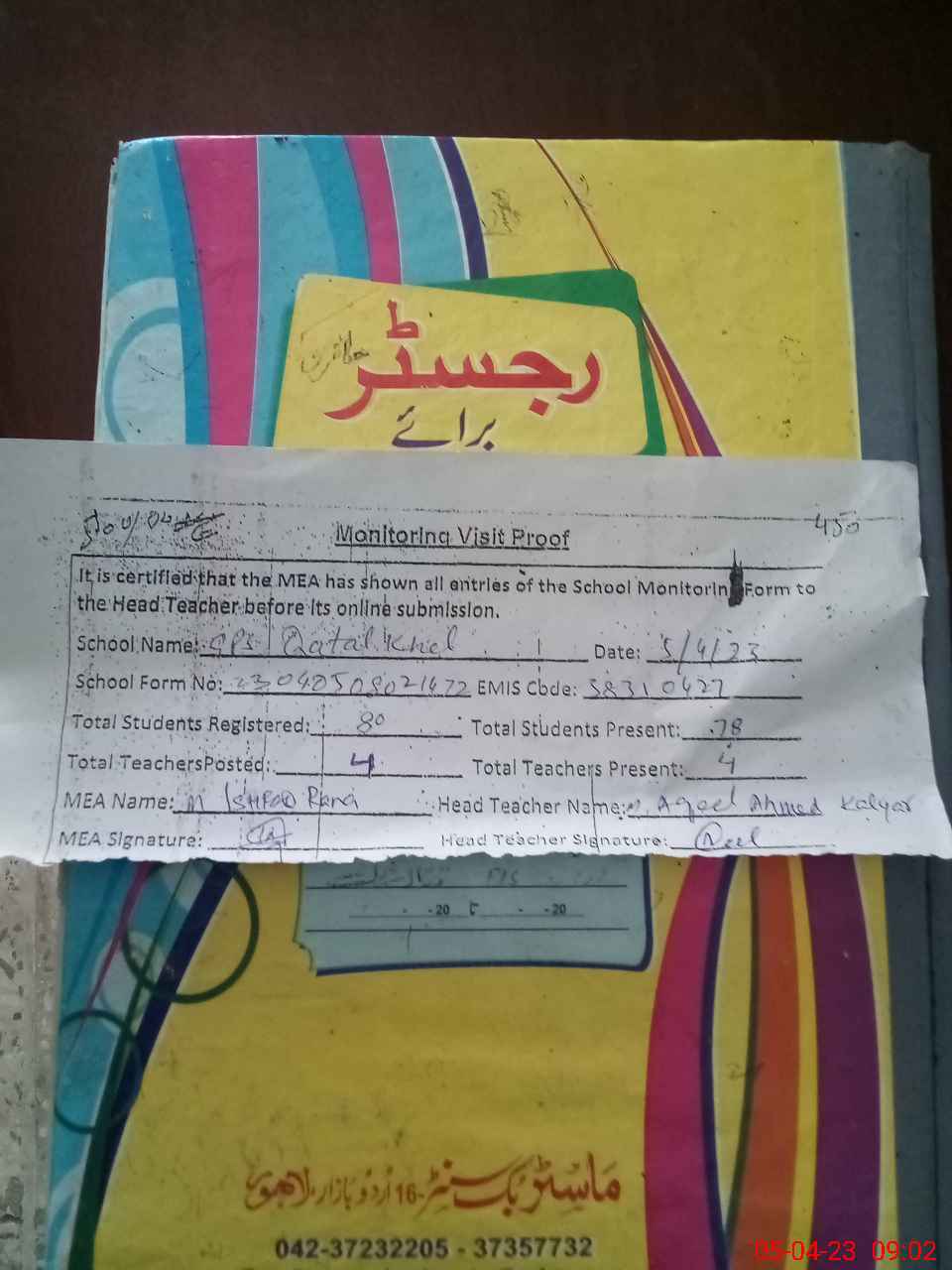 | EMIS Code: 38310427 | Name of School: GPS QATAL KHEL | |||