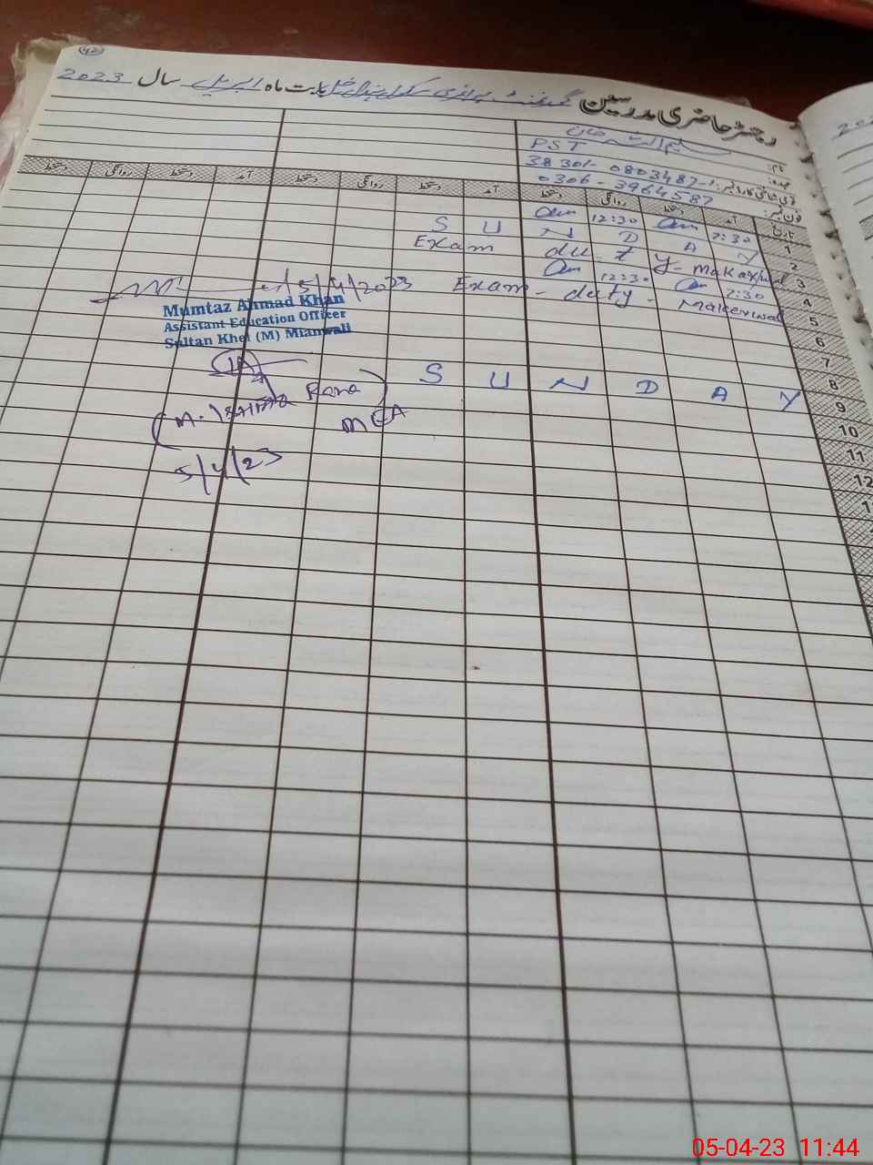 | Name: Mu**** Sa**** Kh**** Designation: (School Headmaster's/Headmistress's) PST Phone/Cell Number: 03**** |
