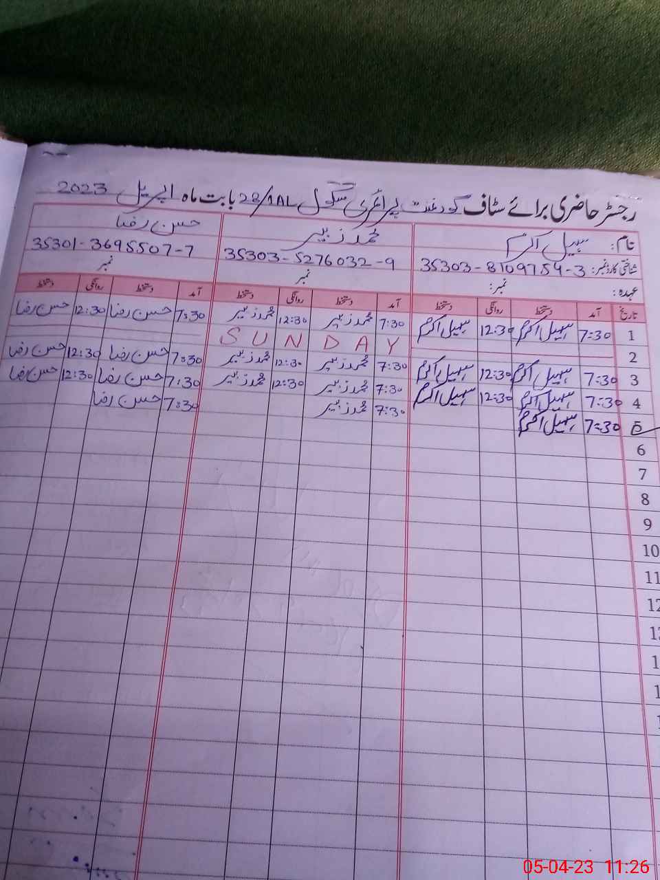 | CNIC | Full Name | Designation | R/C | Absence During Last Calender Month |