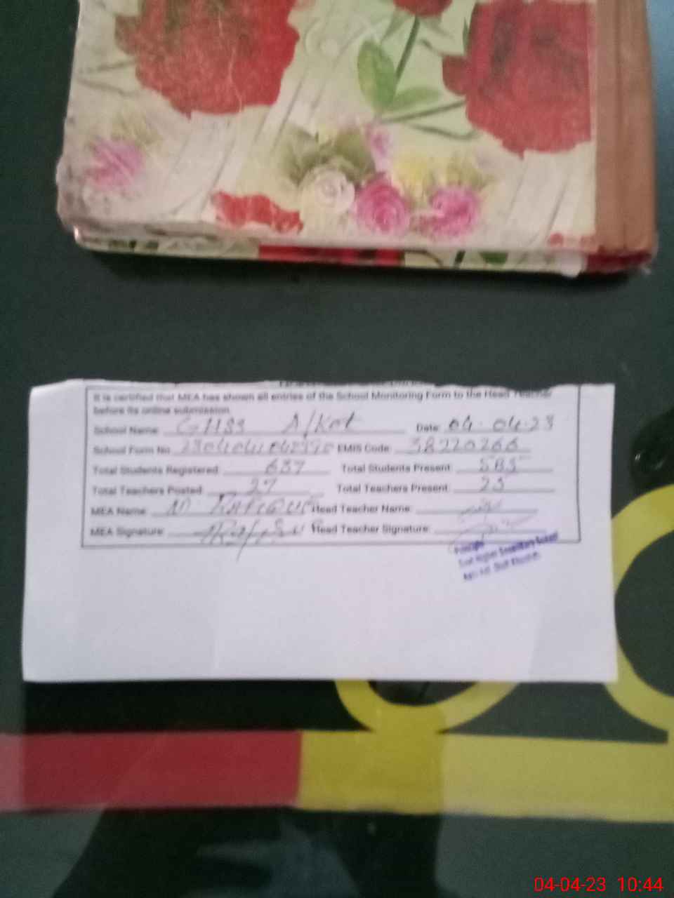 | Attendance Register | Head Teacher | MEA with School | Visit Proof |