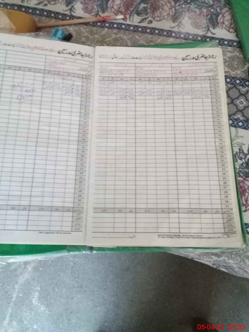| CNIC | Full Name | Designation | R/C | Absence During Last Calender Month |