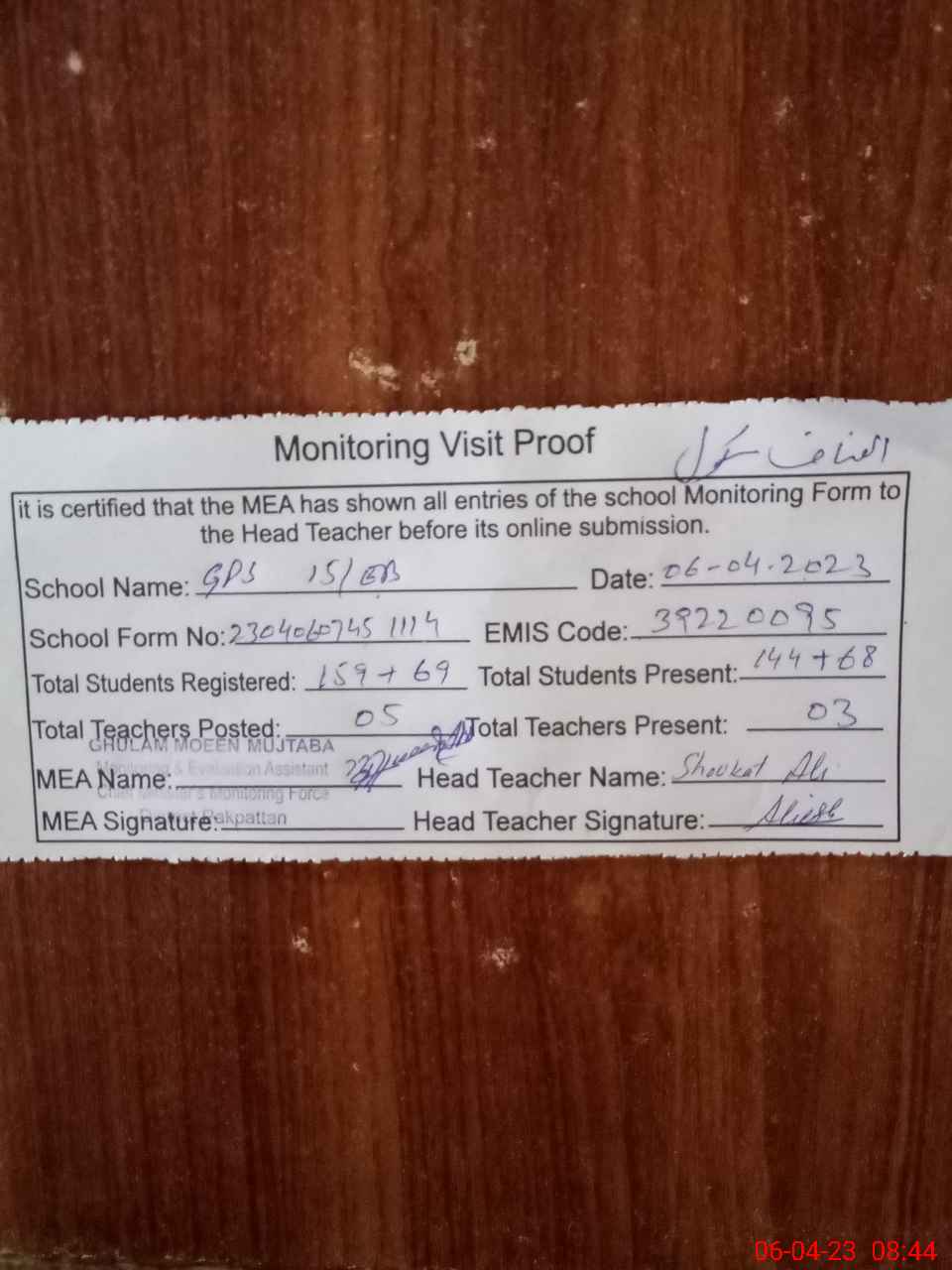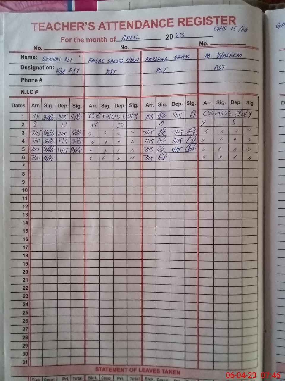 | Name: SH**** AL**** Designation: (School Headmaster's/Headmistress's) PST Phone/Cell Number: 03**** |