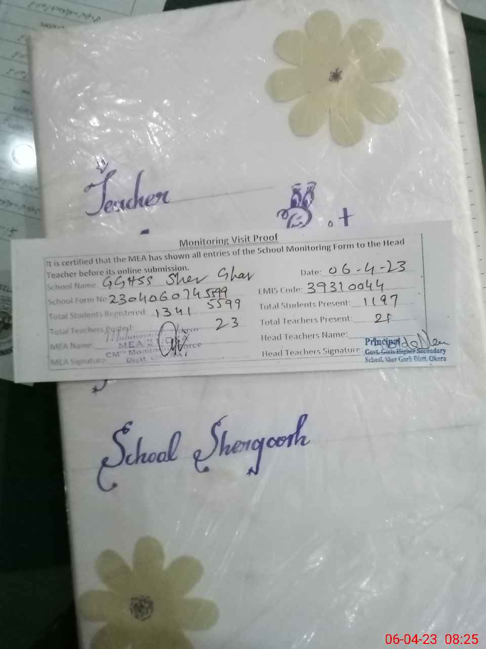 | EMIS Code: 39310044 | Name of School: GGHSS SHER GARRH | |||