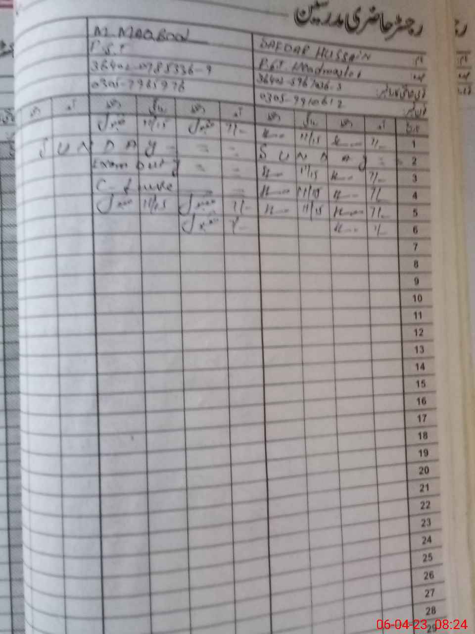 | Name: Sa**** Hu**** Designation: (School Headmaster's/Headmistress's) PST Phone/Cell Number: 03**** |