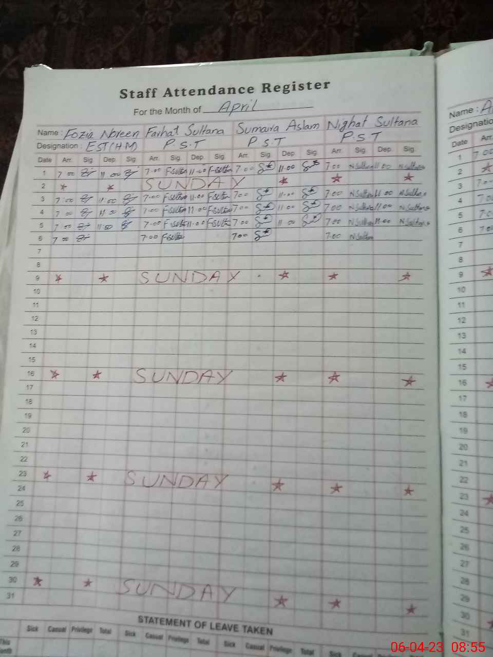 | Leave | Duty | Absent | Maternity | Medical | Ex- Pak |