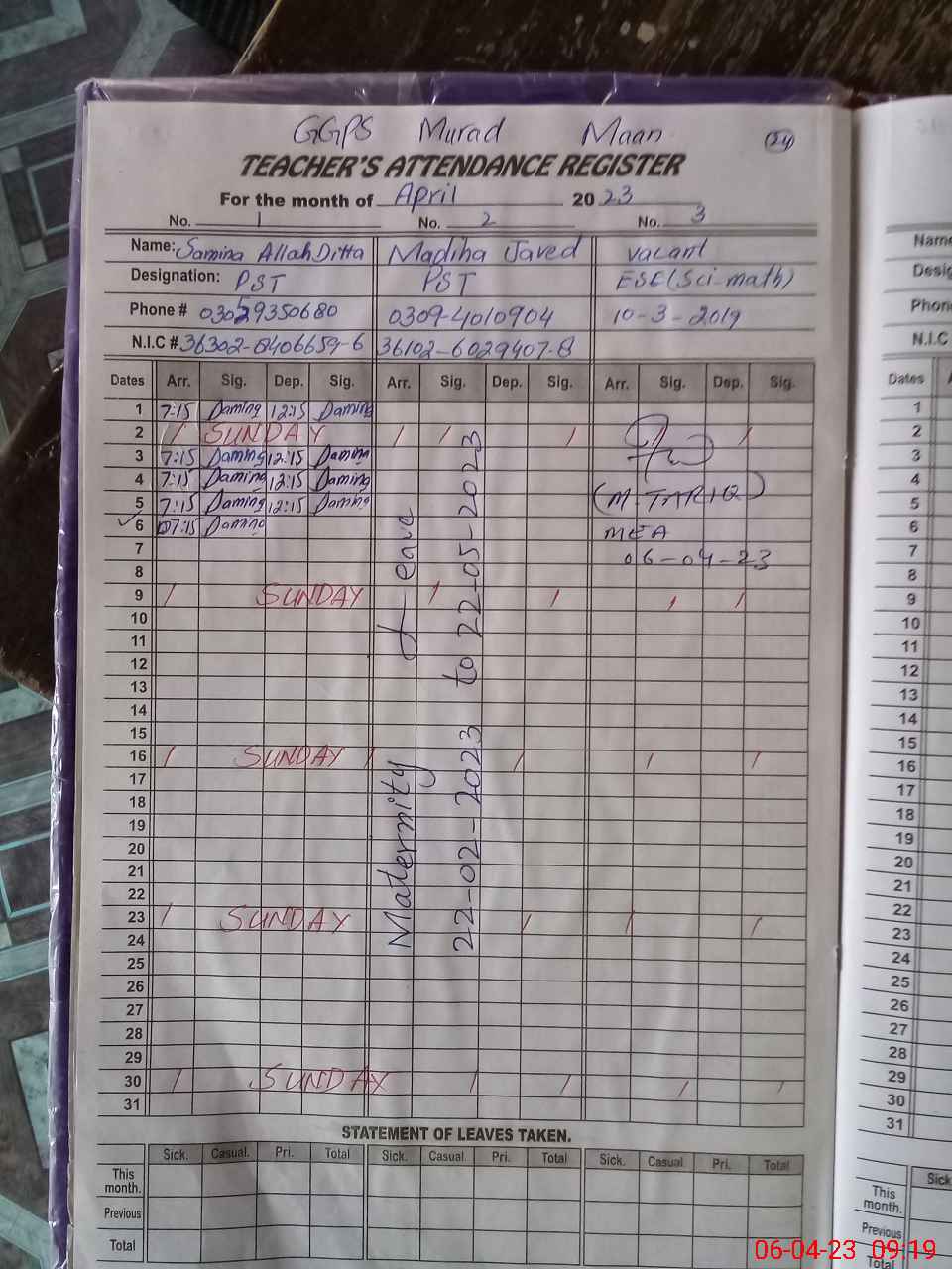 | 36**** | Ha**** Ma**** Ja**** | PST | Regular | 0 | 0 | 0 | 0 | 0 | 0 | 0 | 0 | 0 | Maternity |