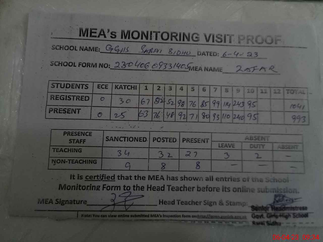 | EMIS Code: 36410035 | Name of School: GGHS SARAI SIDHU | |||