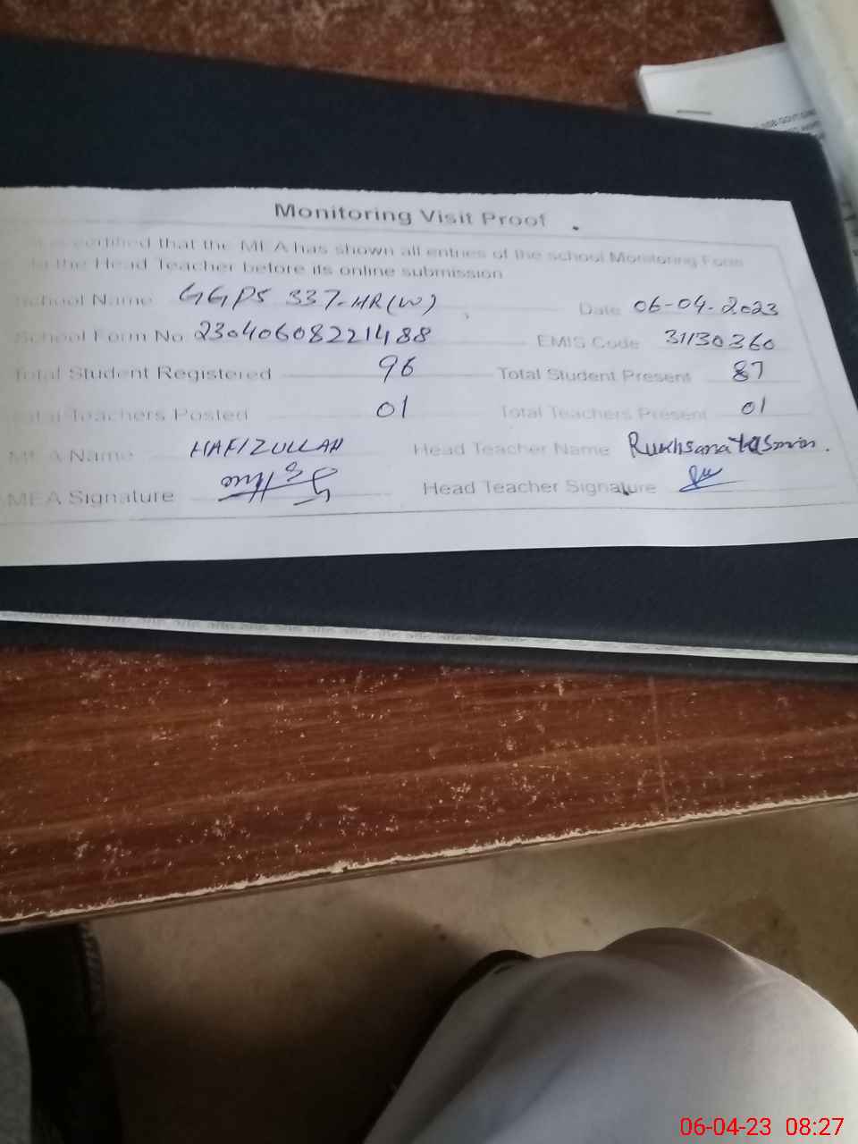 | EMIS Code: 31130360 | Name of School: GGPS CHAK NO 337 HR W | |||