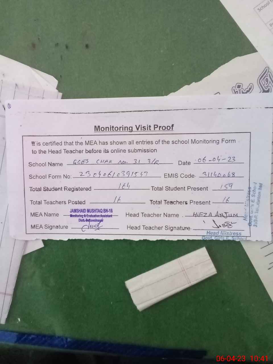 | EMIS Code: 31140068 | Name of School: GGES CHAK NO 31/3-R | |||