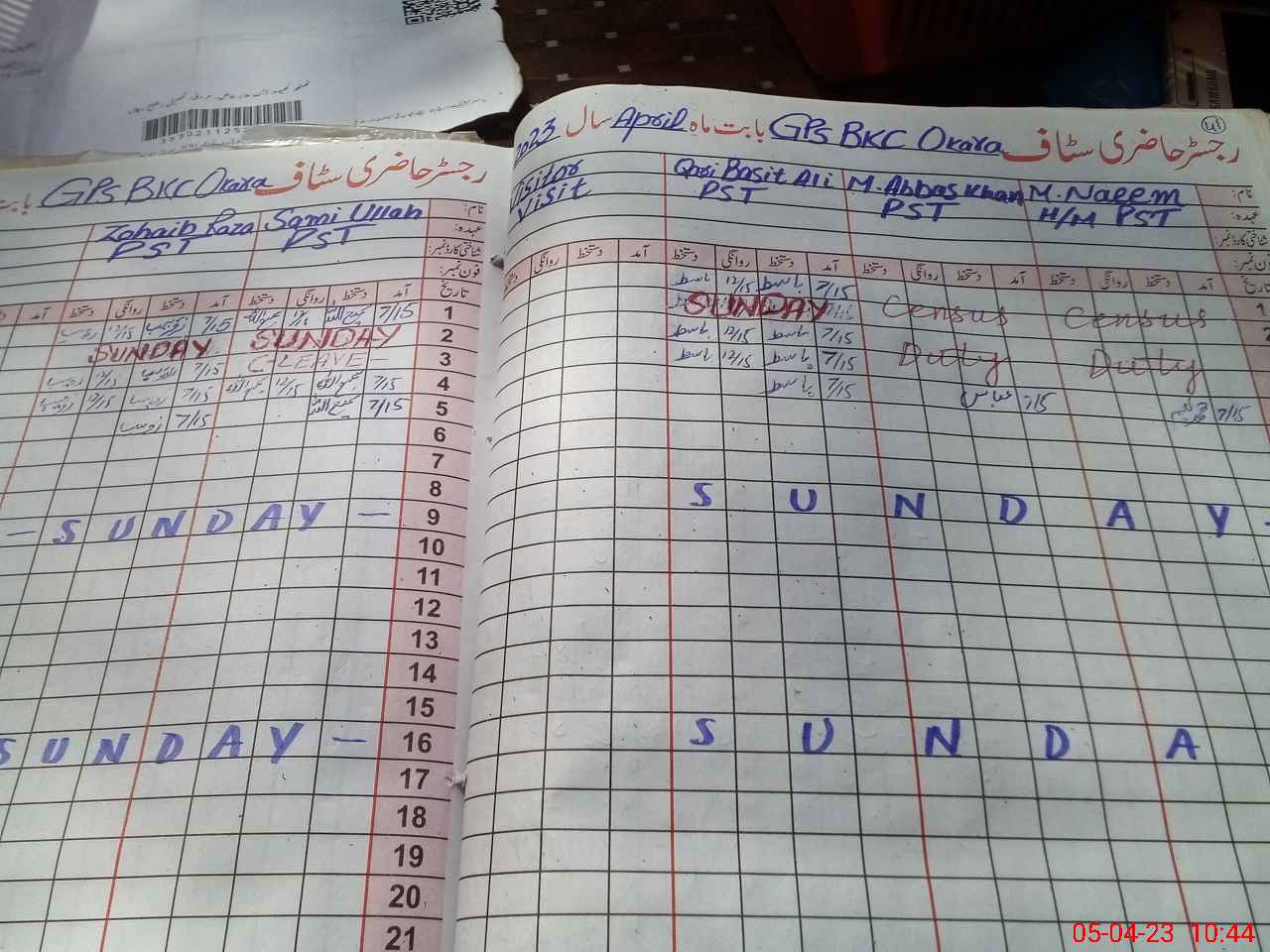 | District: OKARA | Tehsil: OKARA | Markaz: JABOOKA - MALE | Level: Primary | |
