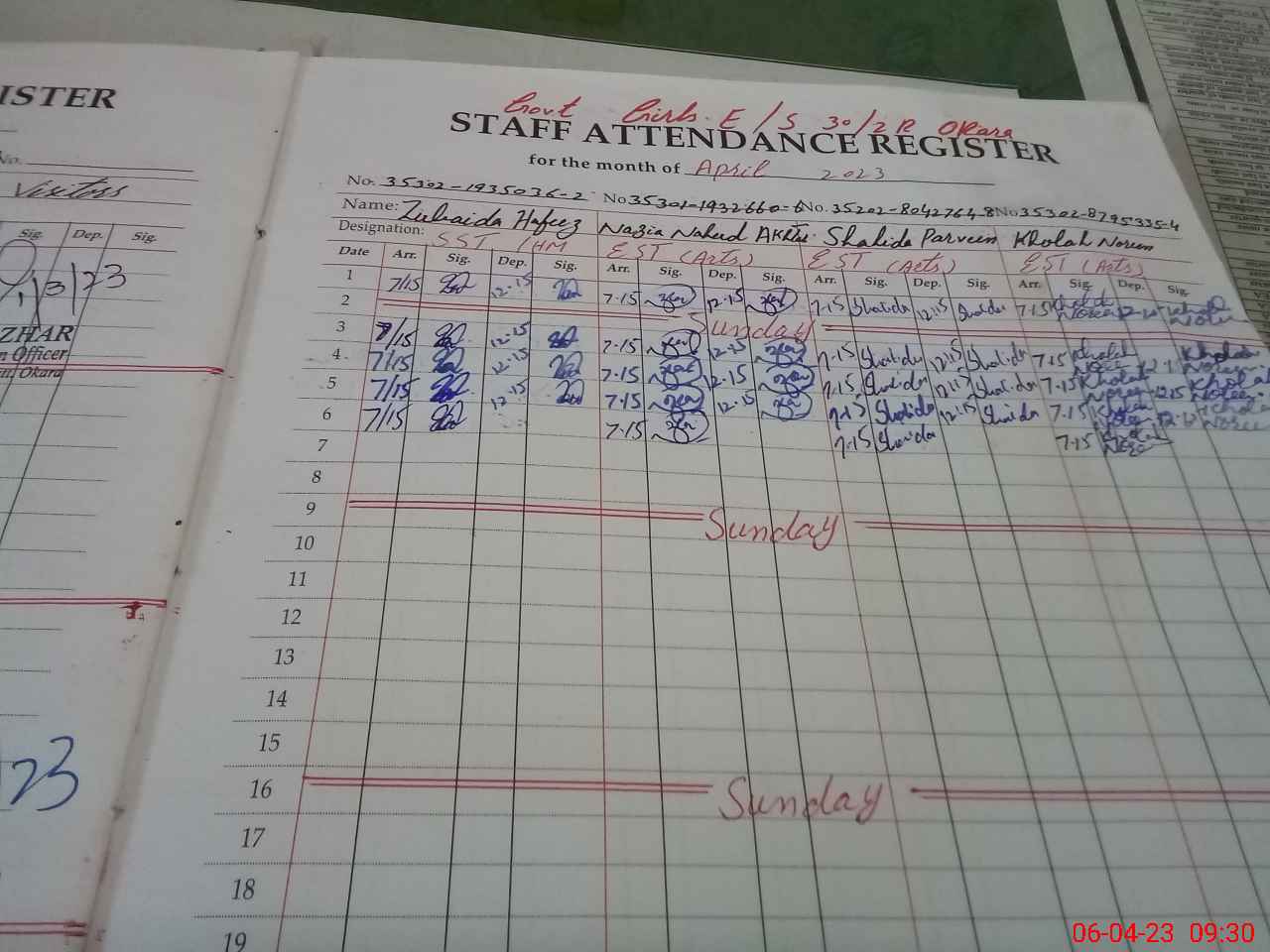| Name: Ta**** Pe**** Designation: (School Headmaster's/Headmistress's) SST Phone/Cell Number: 03**** |