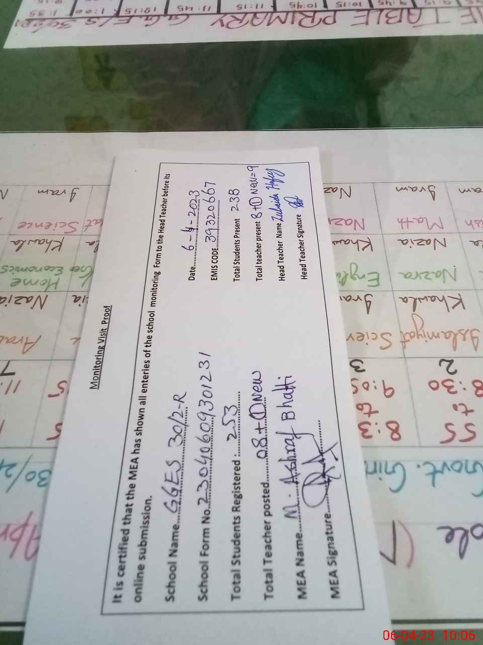 | Certified that this School was Inspected by the Undersigned MEA/DMO Today and the Information Stated Above is as Per Record. | |||||