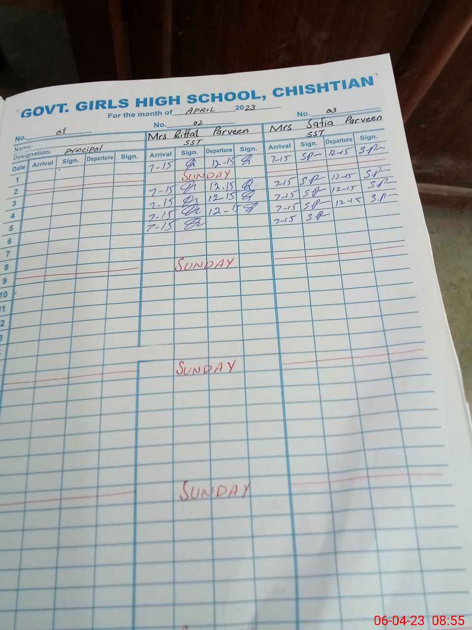 | 31**** | Ki**** Sa**** | Regular | 2 | 0 | 0 | 0 | 0 | 0 | 0 | 0 | 2 | Exam Duty | |