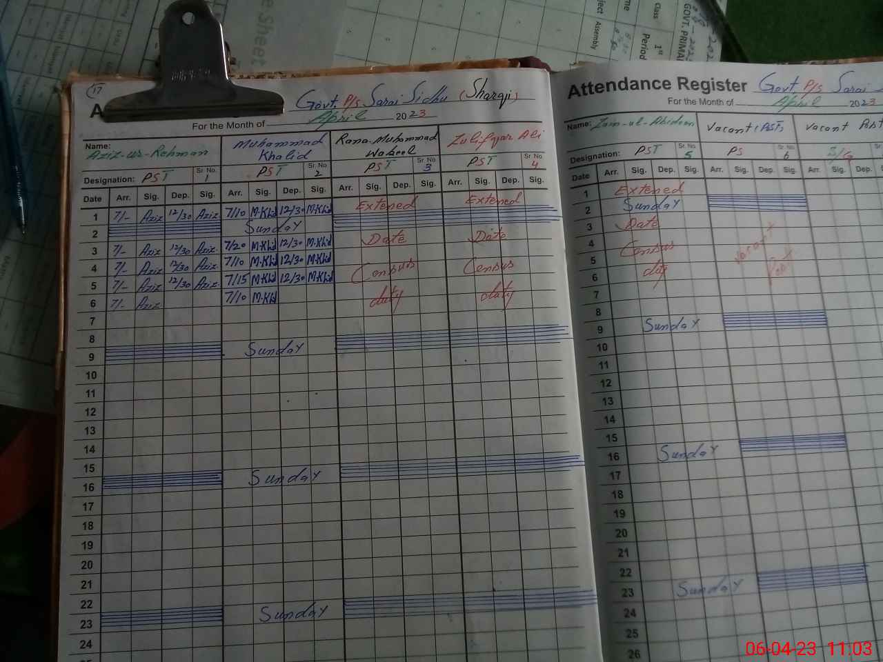 | Name: AZ**** URRE**** Designation: (School Headmaster's/Headmistress's) PST/PTC/JV Phone/Cell Number: 03**** |