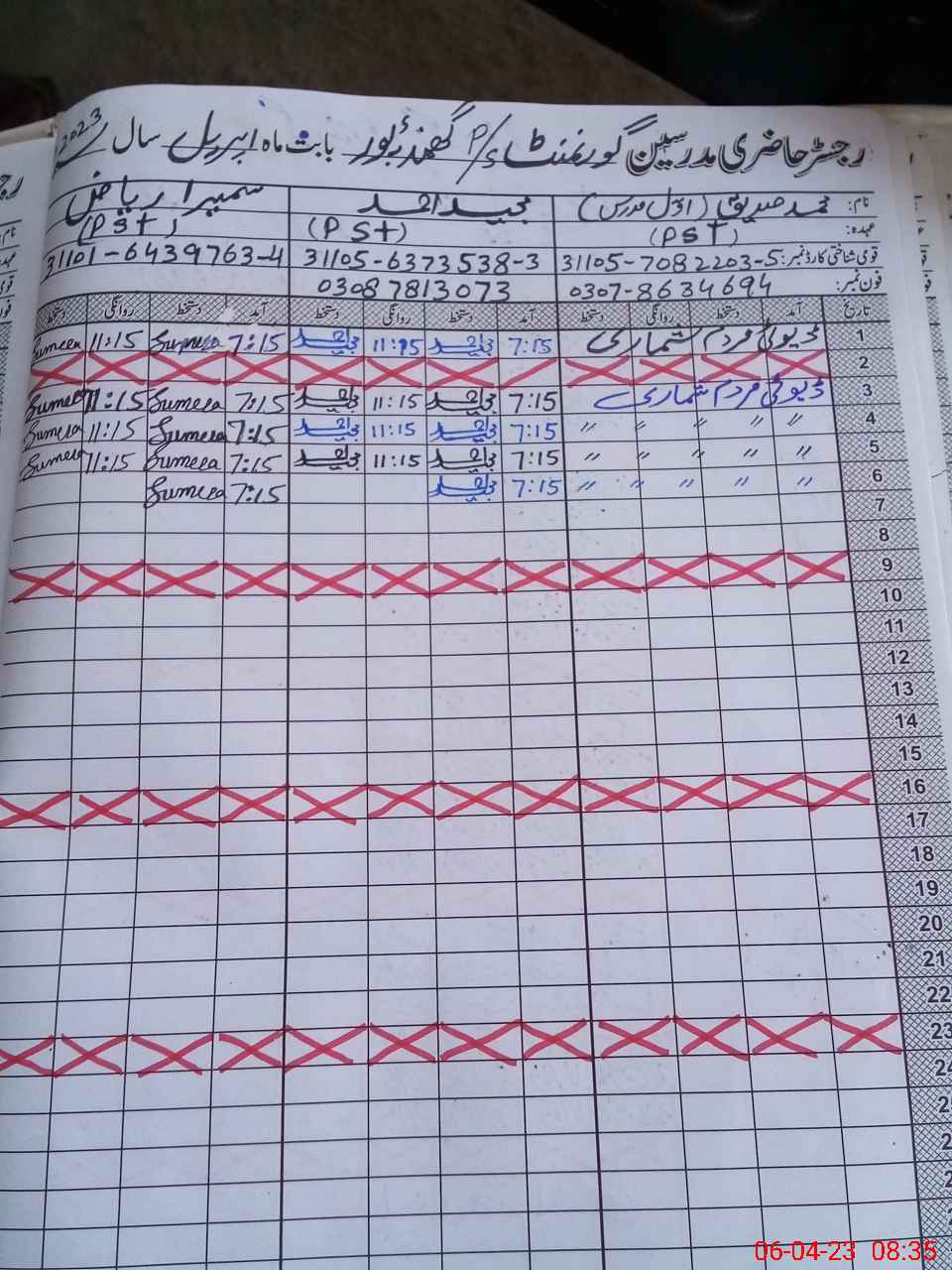 | Name: MU**** Sa**** Designation: (School Headmaster's/Headmistress's) PST Phone/Cell Number: 03**** |
