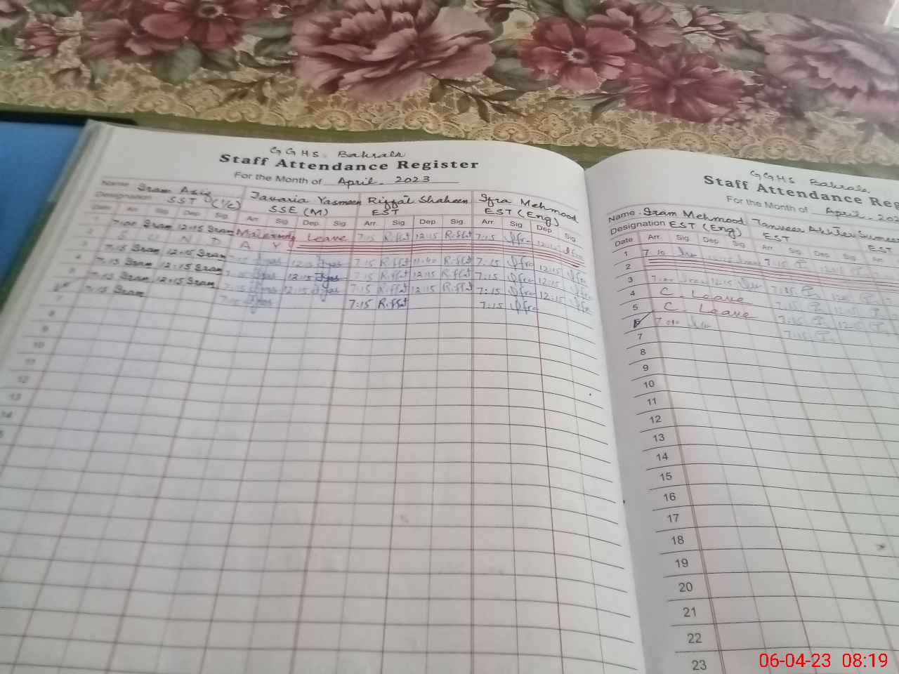 | CNIC | Full Name | Designation | R/C | Absence During Last Calender Month |