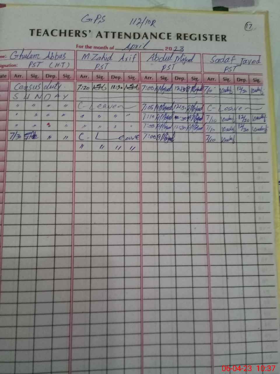 | 36**** | Mu**** Za**** Ar**** | PST | Regular | 0 | 0 | 0 | 0 | 0 | 0 | 0 | 0 | 0 | Casual |