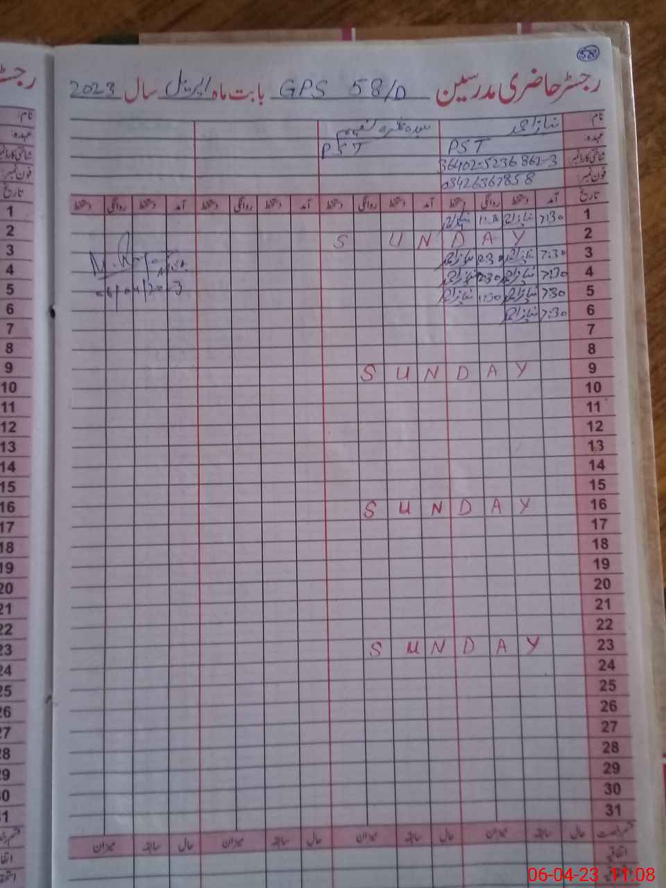 | Name: Sy**** Sa**** Na**** Designation: (School Headmaster's/Headmistress's) PST Phone/Cell Number: 03**** |