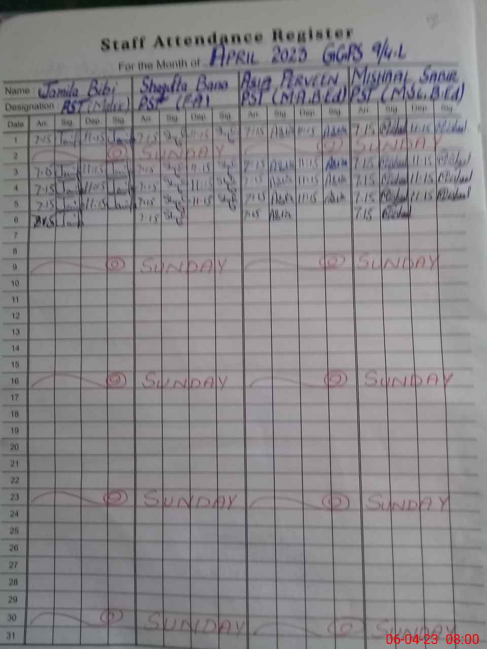 | Name: AS**** PA**** Designation: (School Headmaster's/Headmistress's) PST Phone/Cell Number: 03**** |