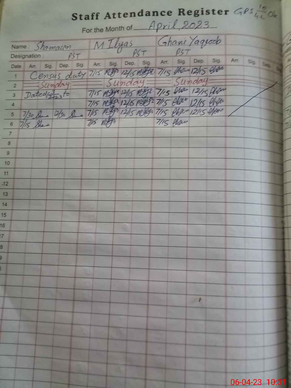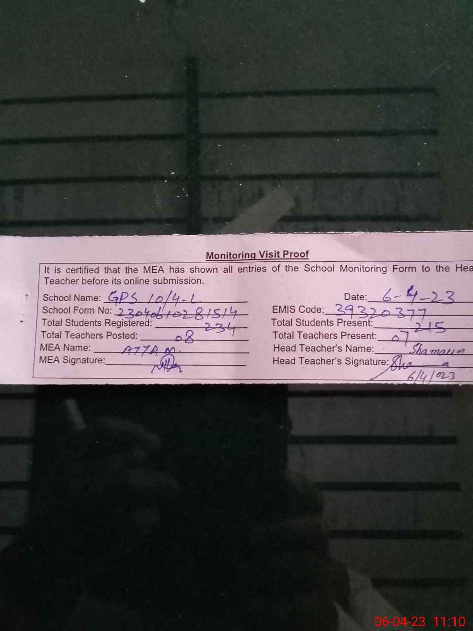 | Name: SH**** Designation: (School Headmaster's/Headmistress's) PST Phone/Cell Number: 03**** |