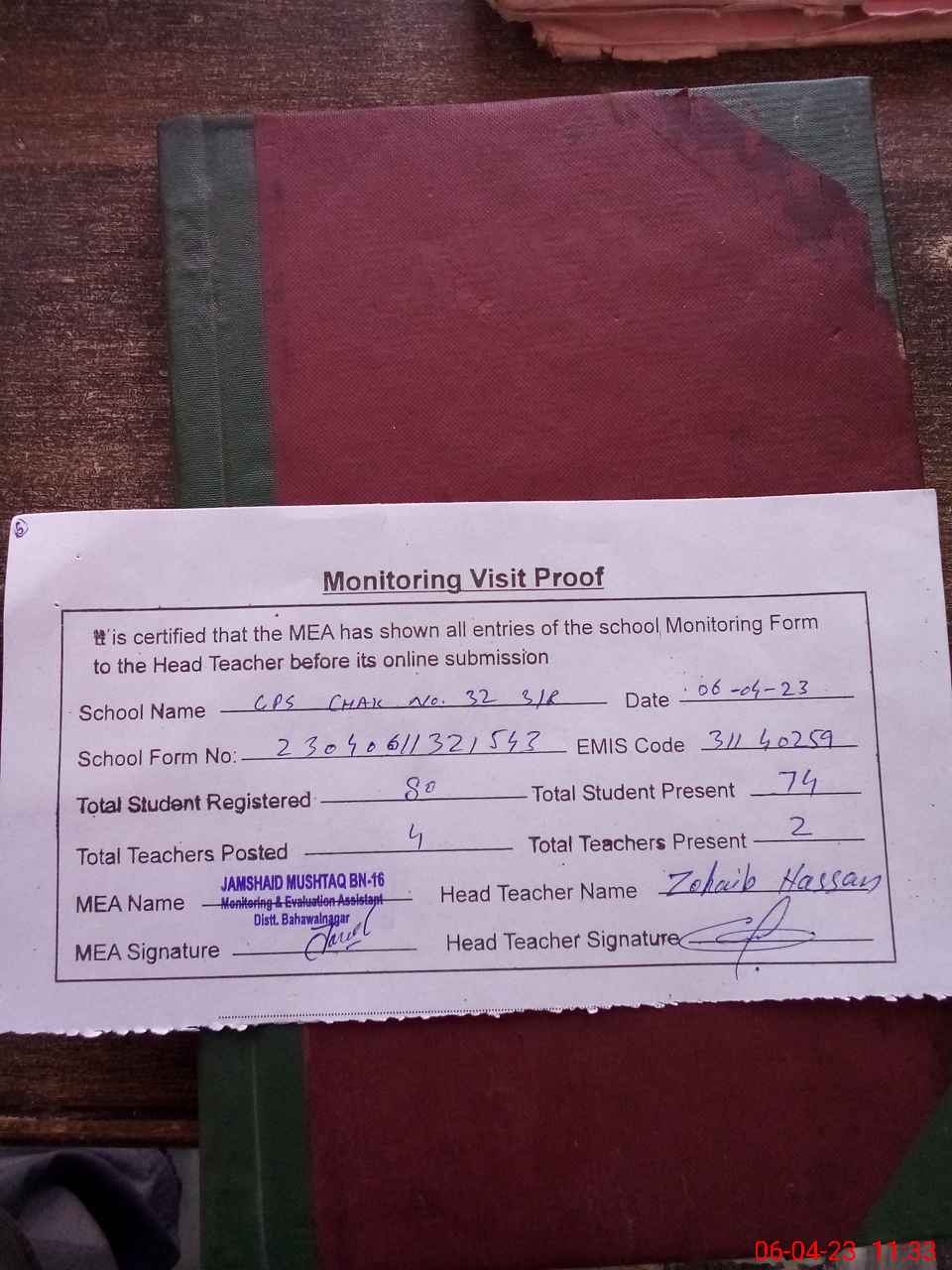 | EMIS Code: 31140259 | Name of School: GPS CHAK NO.32/3-R | |||
