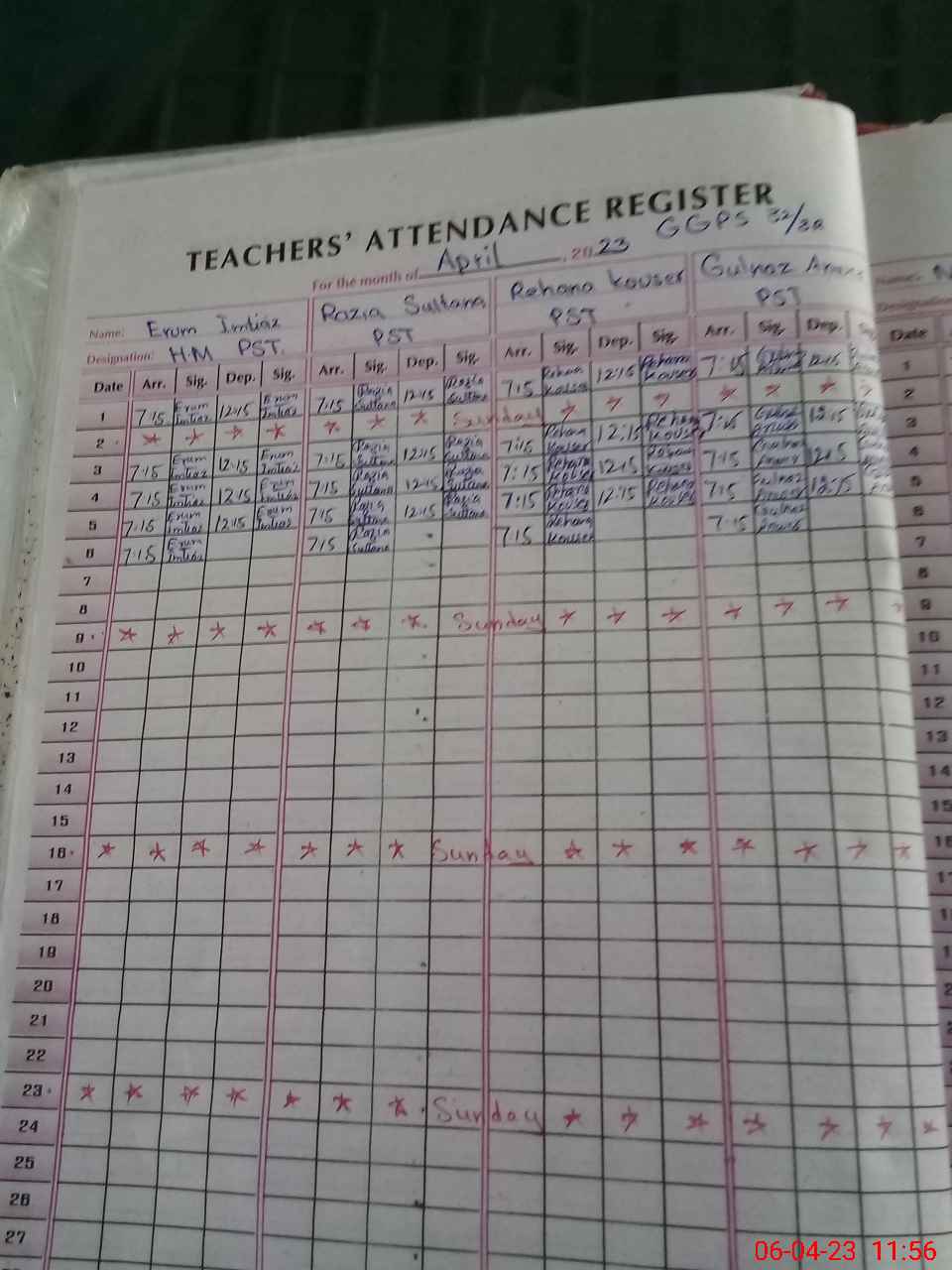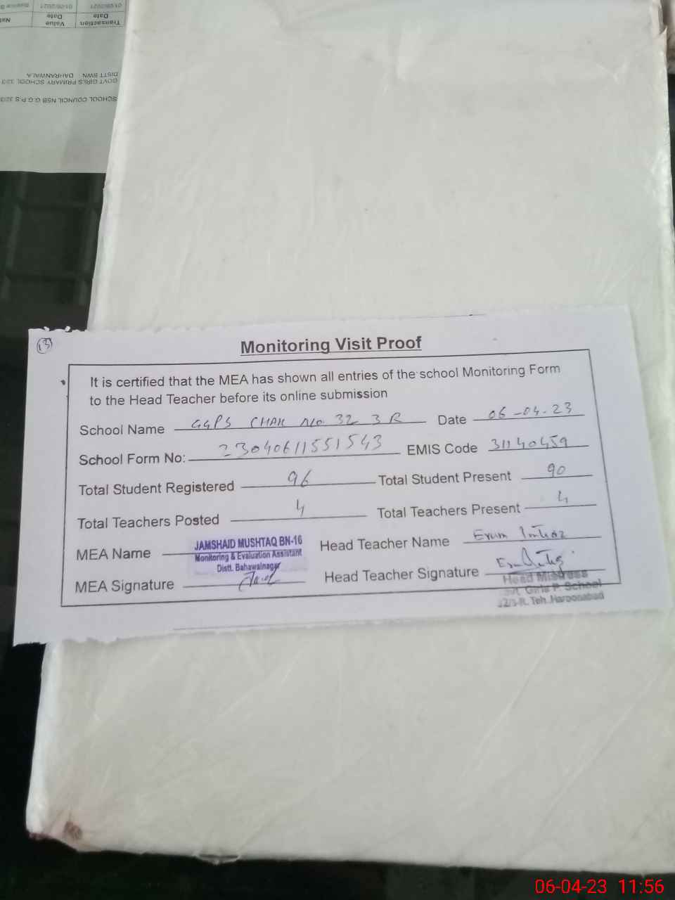 | Attendance Register | Head Teacher | MEA with School | Visit Proof |