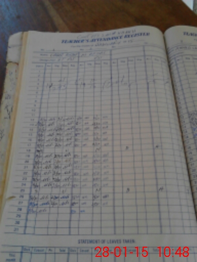 | CNIC | Full Name | Designation | R/C | Absence During Last Calender Month |