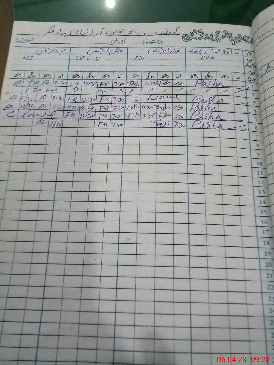 | CNIC | Full Name | Designation | R/C | Absence During Last Calender Month |