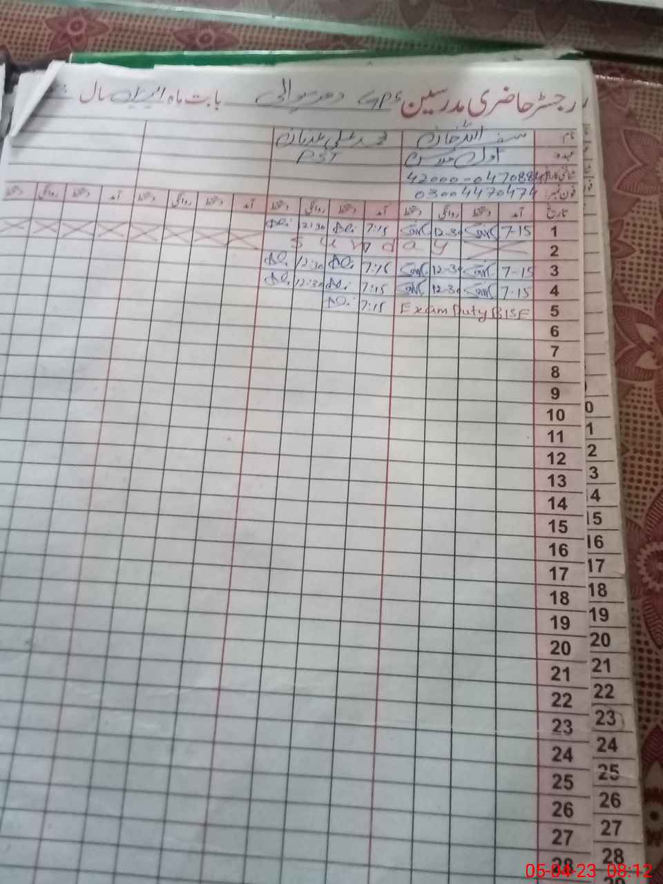 | 42**** | Sa**** Kh**** | PST | Regular | 0 | 0 | 0 | 0 | 0 | 0 | 0 | 0 | 0 | Exam Duty |