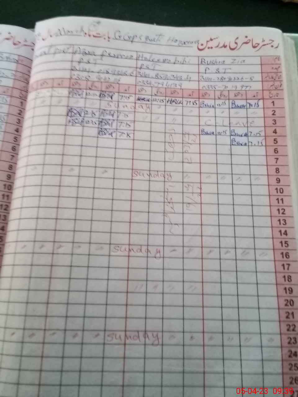 | Name: AQ**** RA**** Designation: (School Headmaster's/Headmistress's) PST Phone/Cell Number: 03**** |