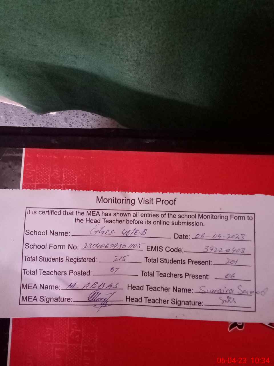 | Certified that this School was Inspected by the Undersigned MEA/DMO Today and the Information Stated Above is as Per Record. | |||||