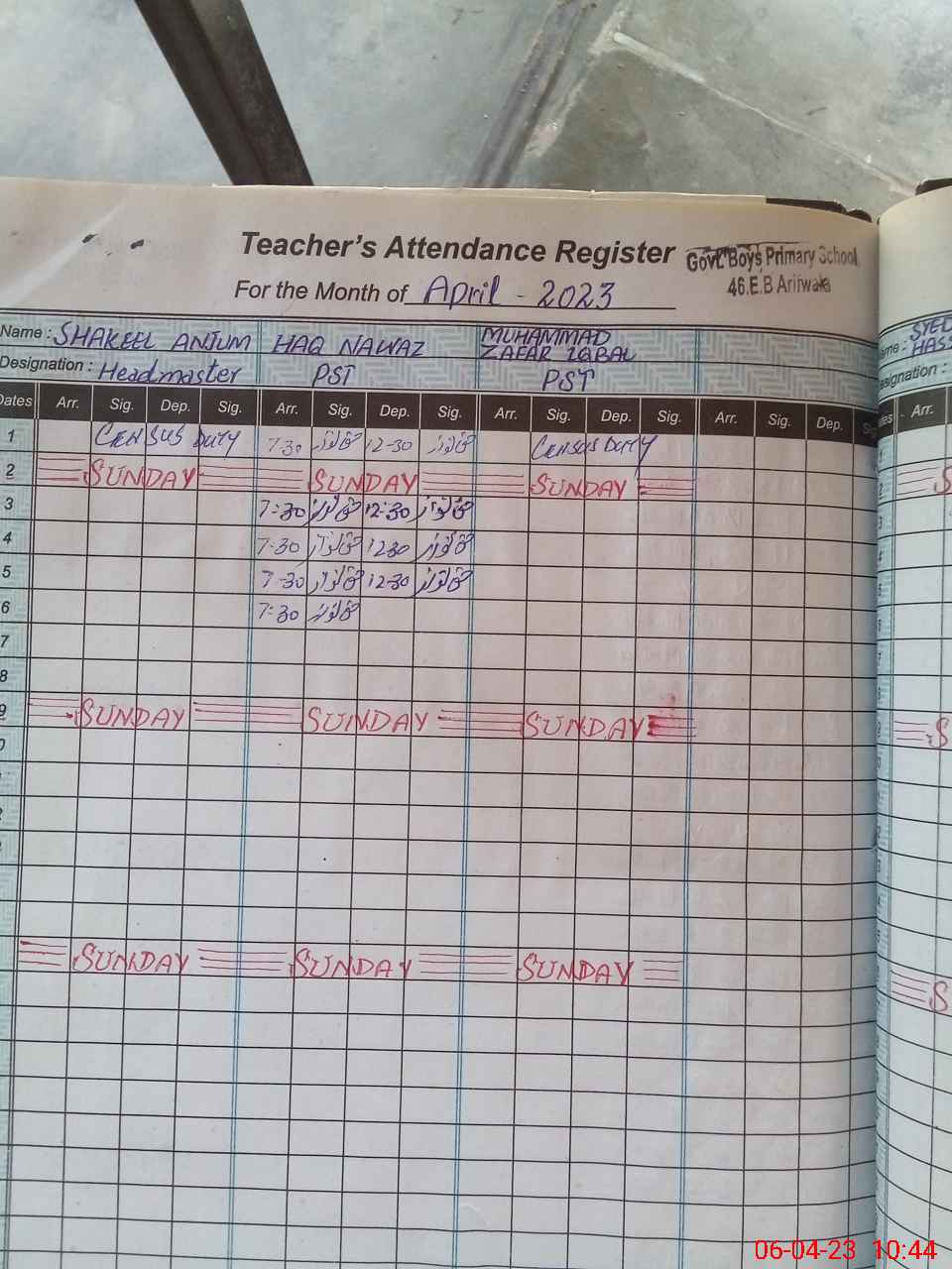 | Name: MU**** ZA**** IQ**** Designation: (School Headmaster's/Headmistress's) PST Phone/Cell Number: 03**** |