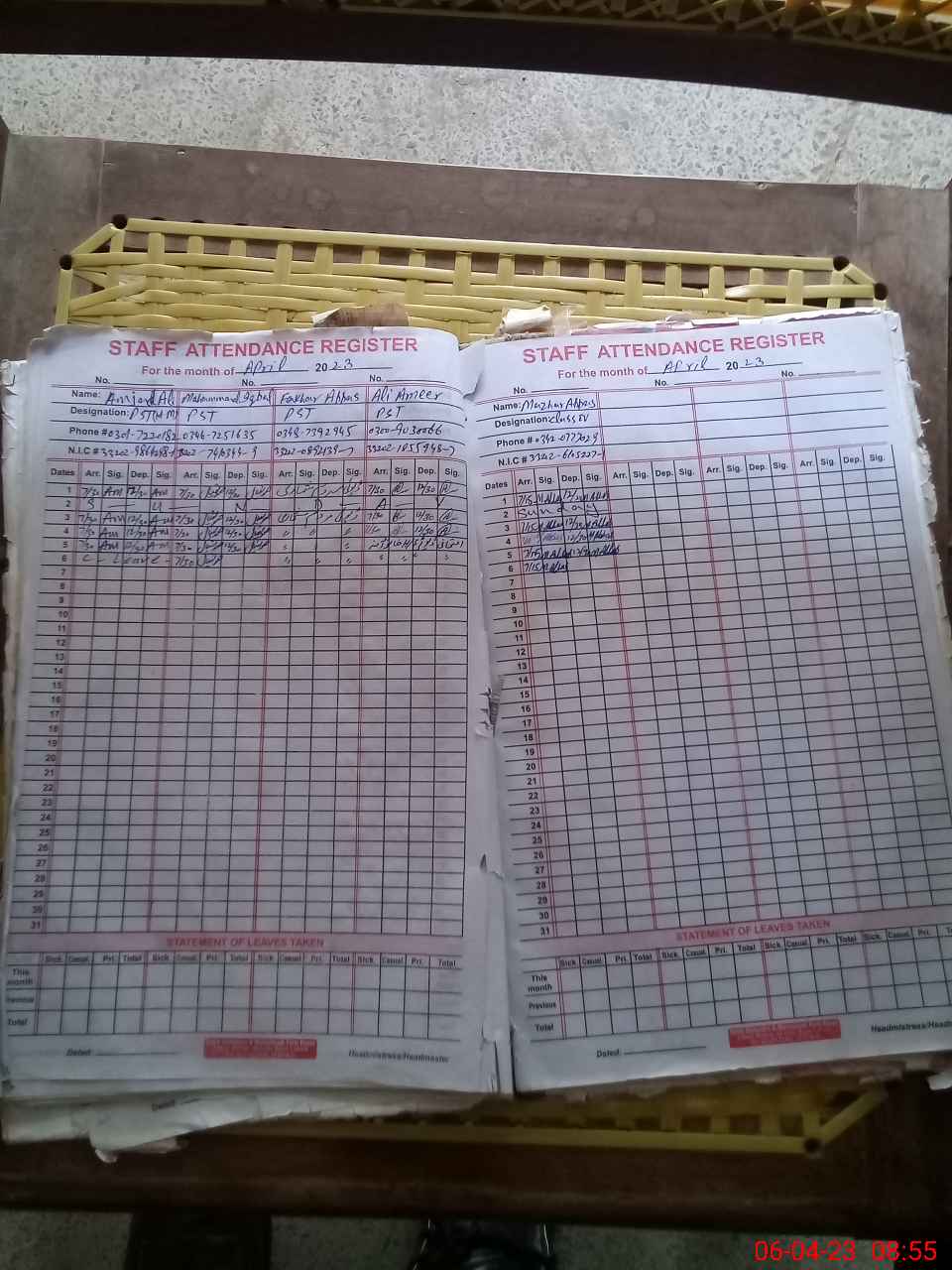 | Name: AM**** AL**** Designation: (School Headmaster's/Headmistress's) PST Phone/Cell Number: 03**** |