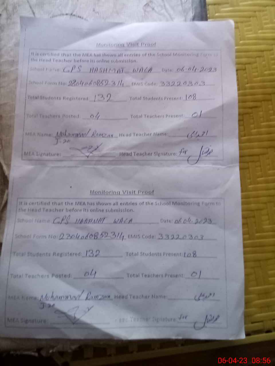 | EMIS Code: 33220303 | Name of School: GPS HASHMAT WALA | |||