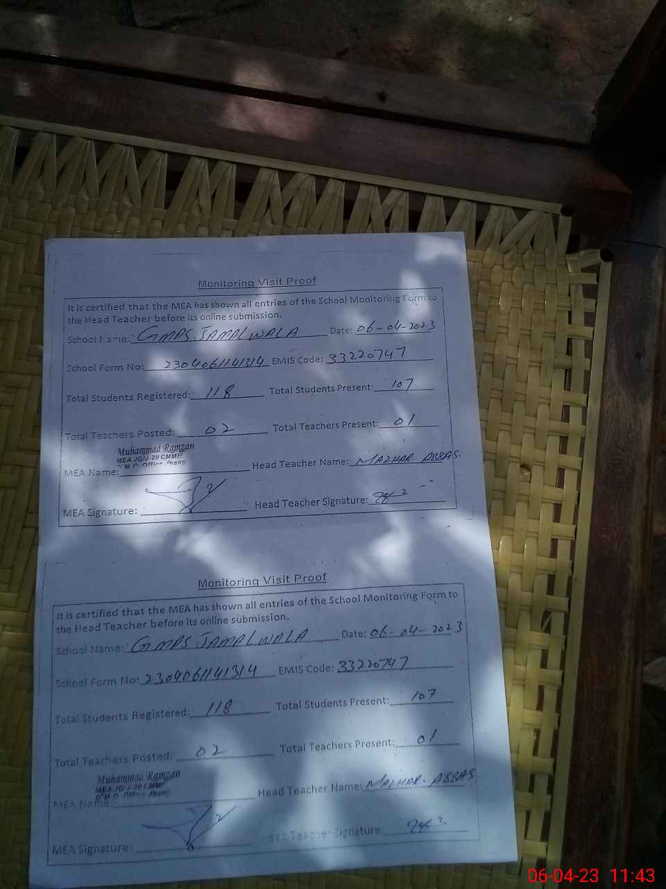 | EMIS Code: 33220747 | Name of School: GMPS JAMAL WALA | |||