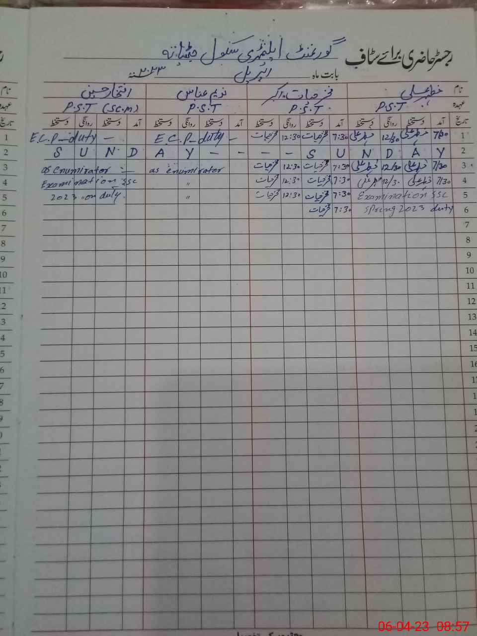 | CNIC | Full Name | Designation | R/C | Absence During Last Calender Month |