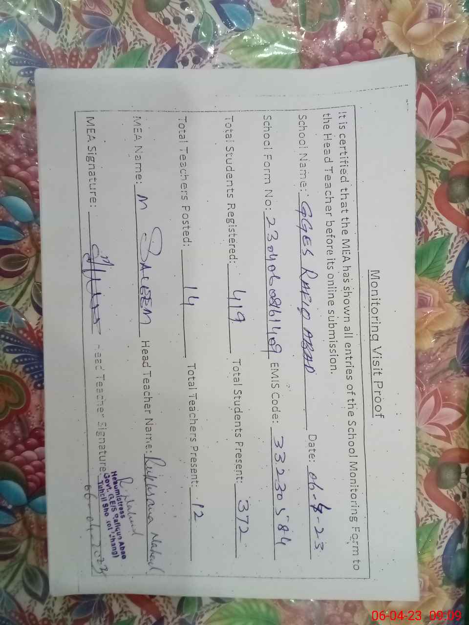 | EMIS Code: 33230584 | Name of School: GGES RAFIQ ABAD | |||