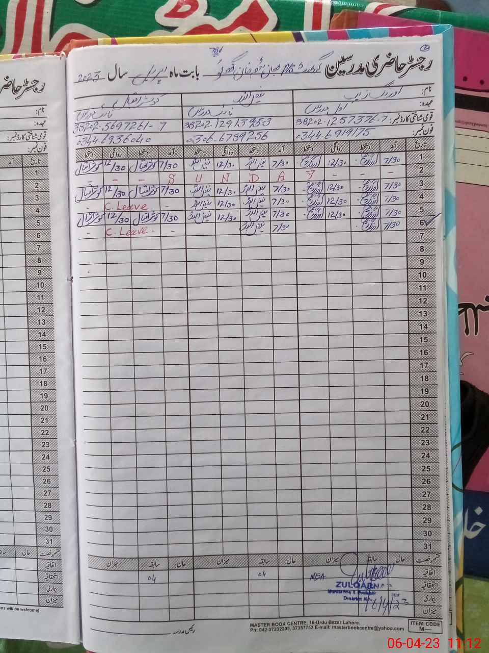 | CNIC | Full Name | Designation | R/C | Absence During Last Calender Month |