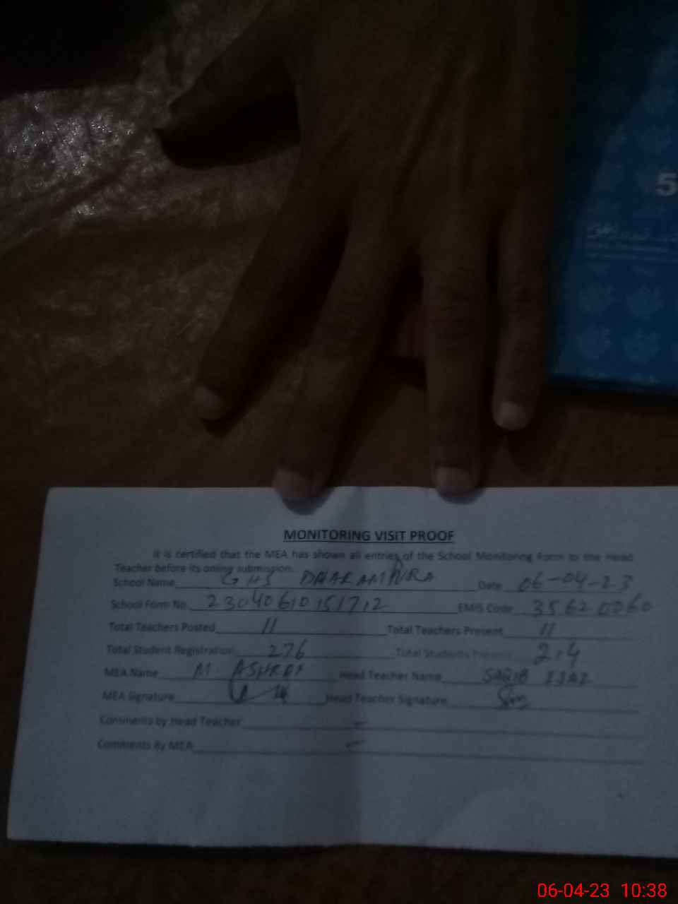 | Certified that this School was Inspected by the Undersigned MEA/DMO Today and the Information Stated Above is as Per Record. | |||||