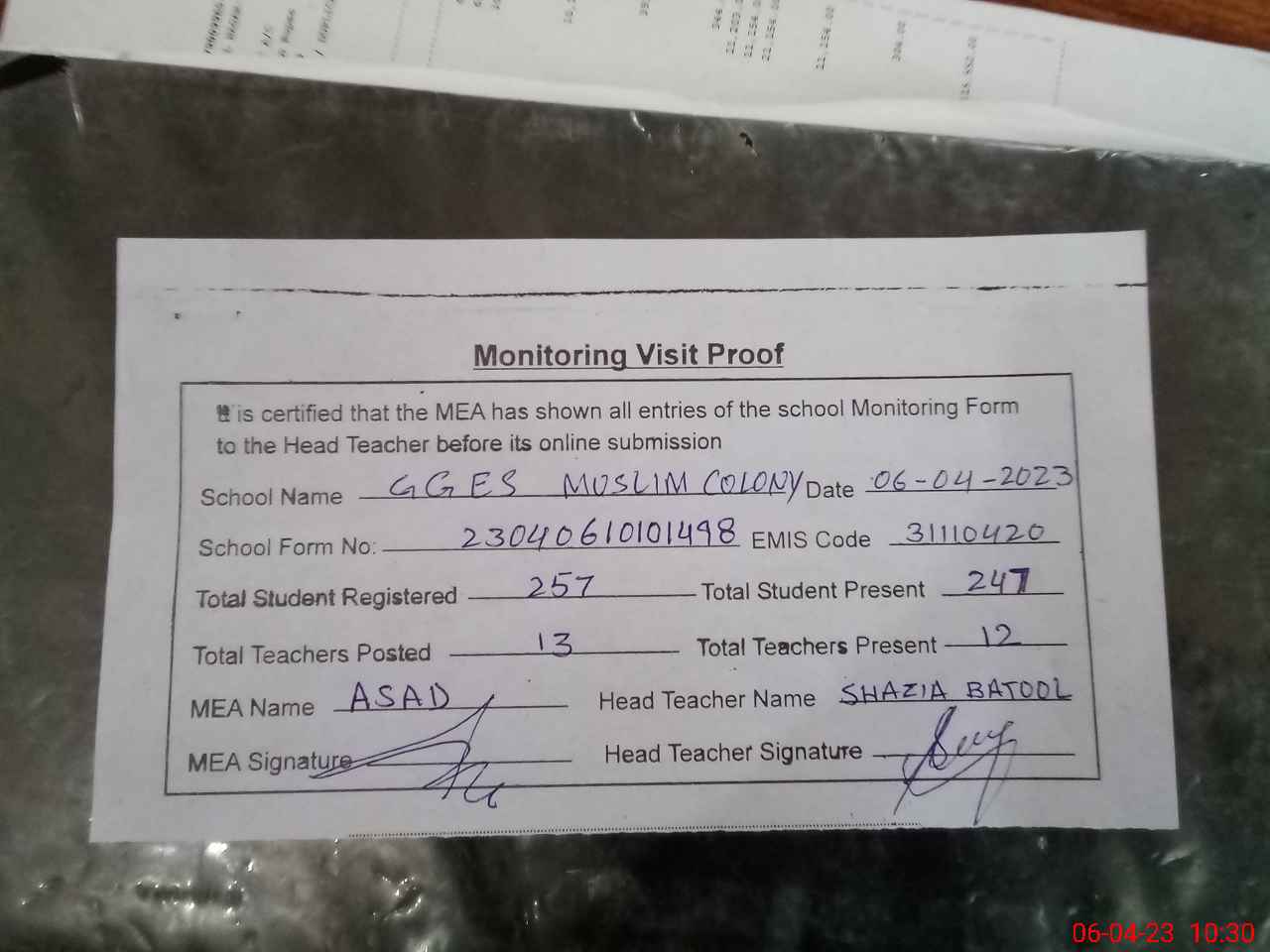 | EMIS Code: 31110420 | Name of School: GGES MUSLIM COLONY | |||
