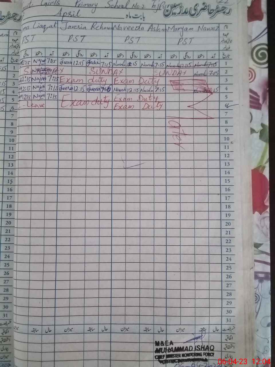 | 34**** | Na**** As**** | PST | Regular | 0 | 0 | 0 | 0 | 0 | 0 | 0 | 0 | 0 | Exam Duty |
