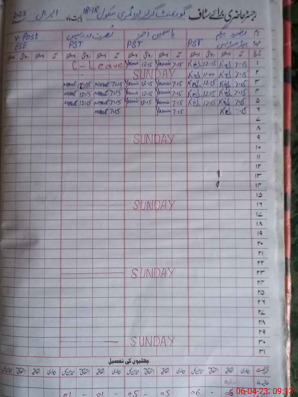 | CNIC | Full Name | Designation | R/C | Absence During Last Calender Month |