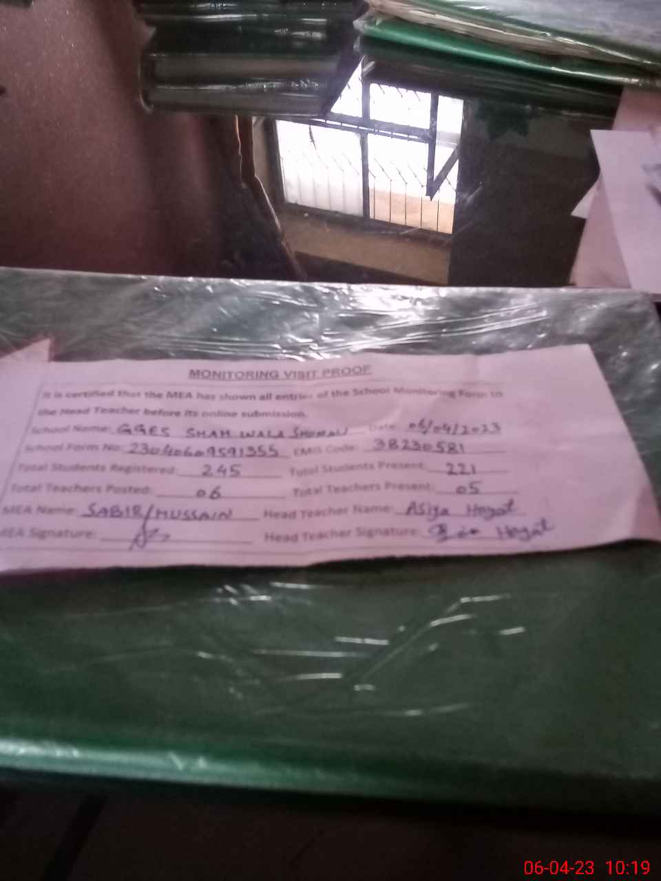 | Attendance Register | Head Teacher | MEA with School | Visit Proof |