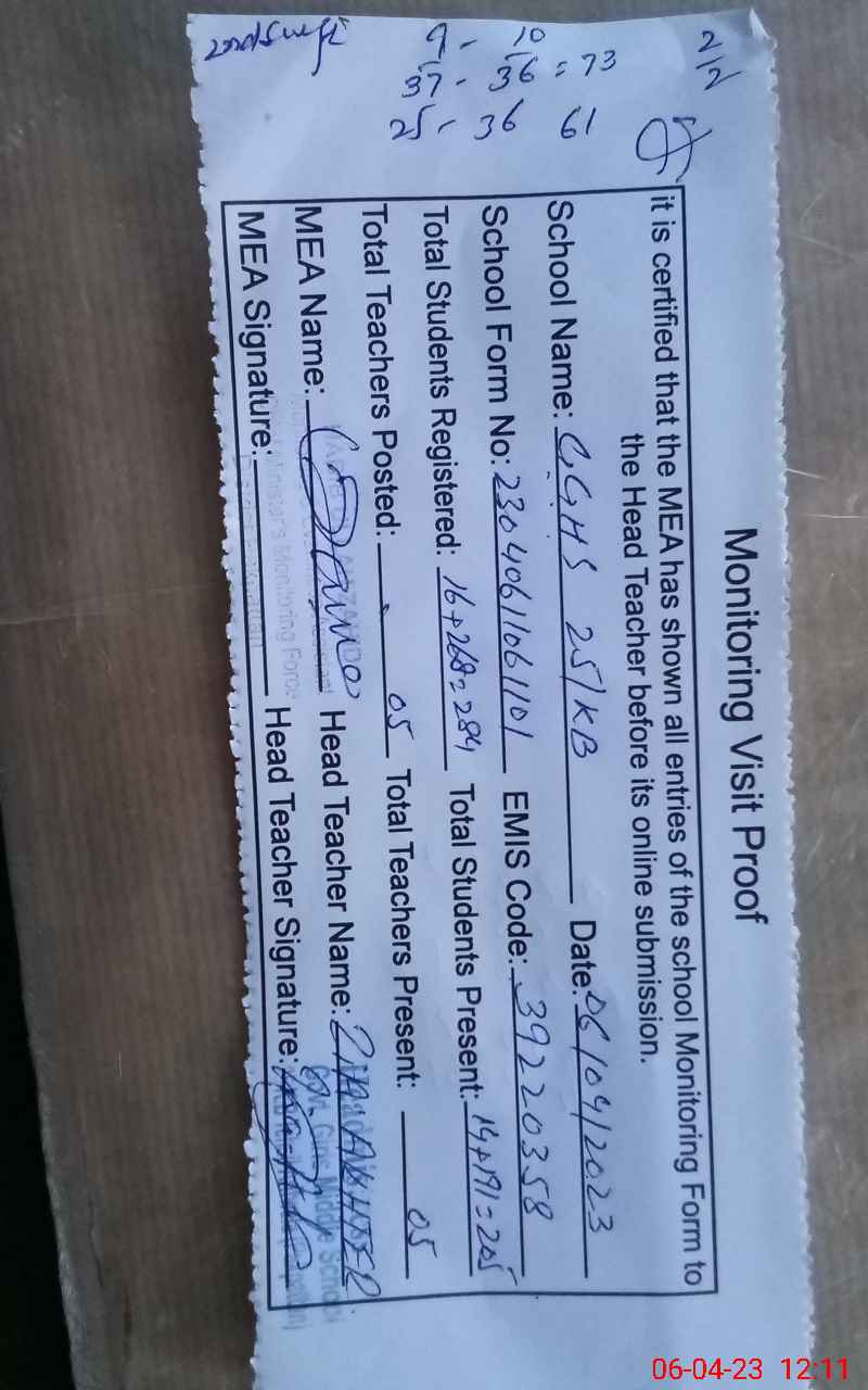 | EMIS Code: 39220358 | Name of School: GGHS 25 KB | |||
