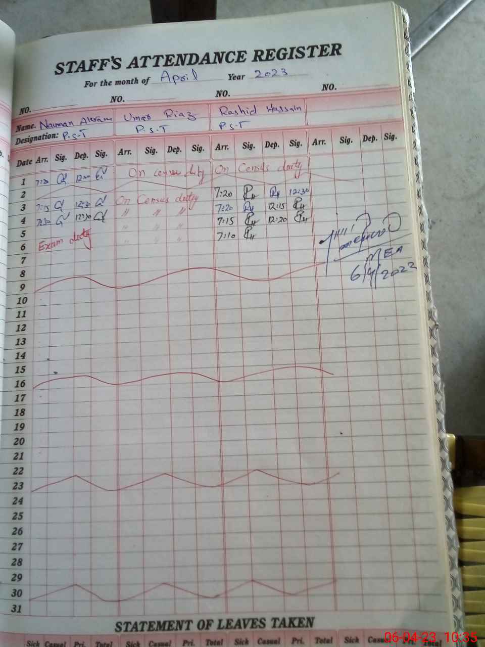 | 37**** | Na**** Ak**** | PST | Regular | 0 | 0 | 0 | 0 | 0 | 0 | 0 | 0 | 0 | Exam Duty |