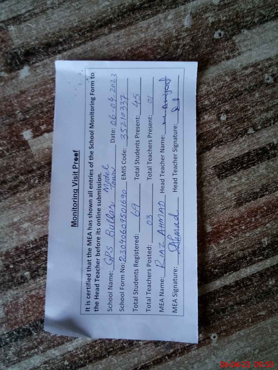 | EMIS Code: 35210337 | Name of School: GPS BALHAR TEHSIL MODEL TOWN | |||