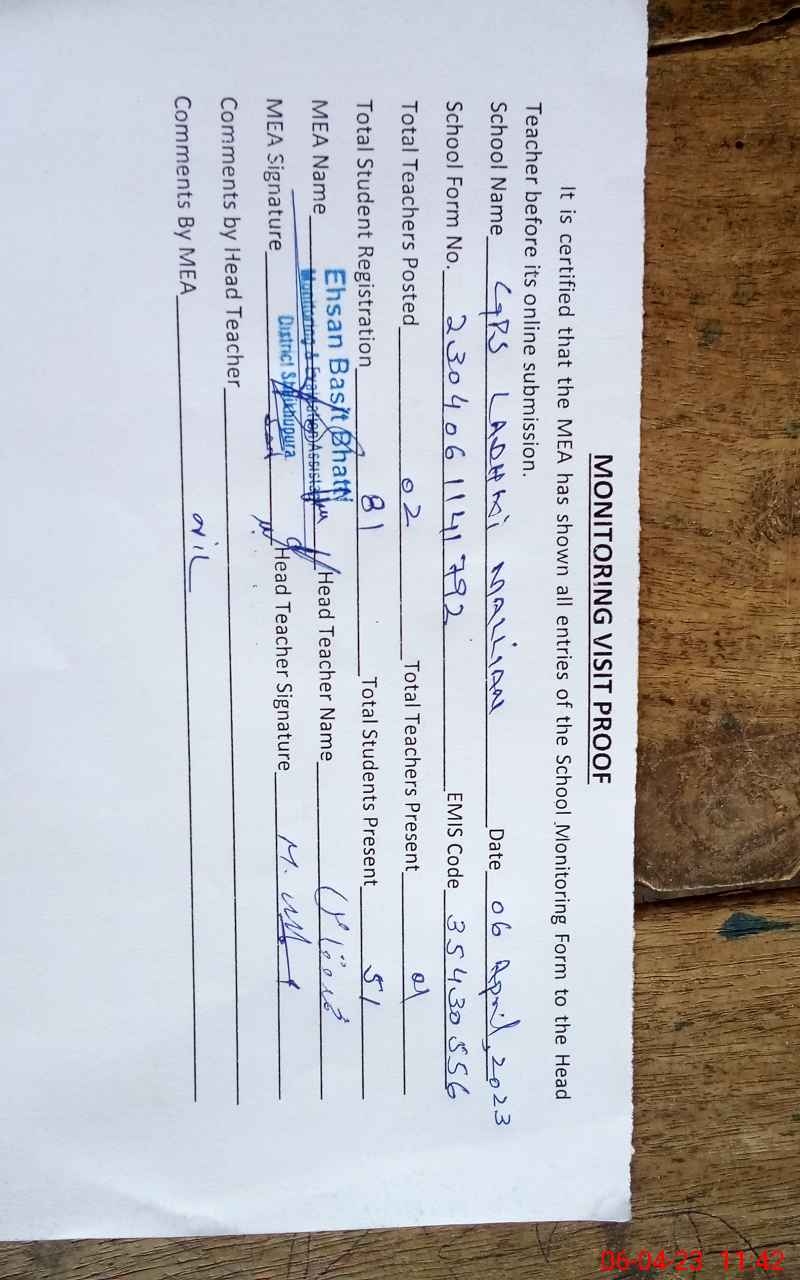 | EMIS Code: 35430556 | Name of School: GPS LADHKI MALLIAN | |||