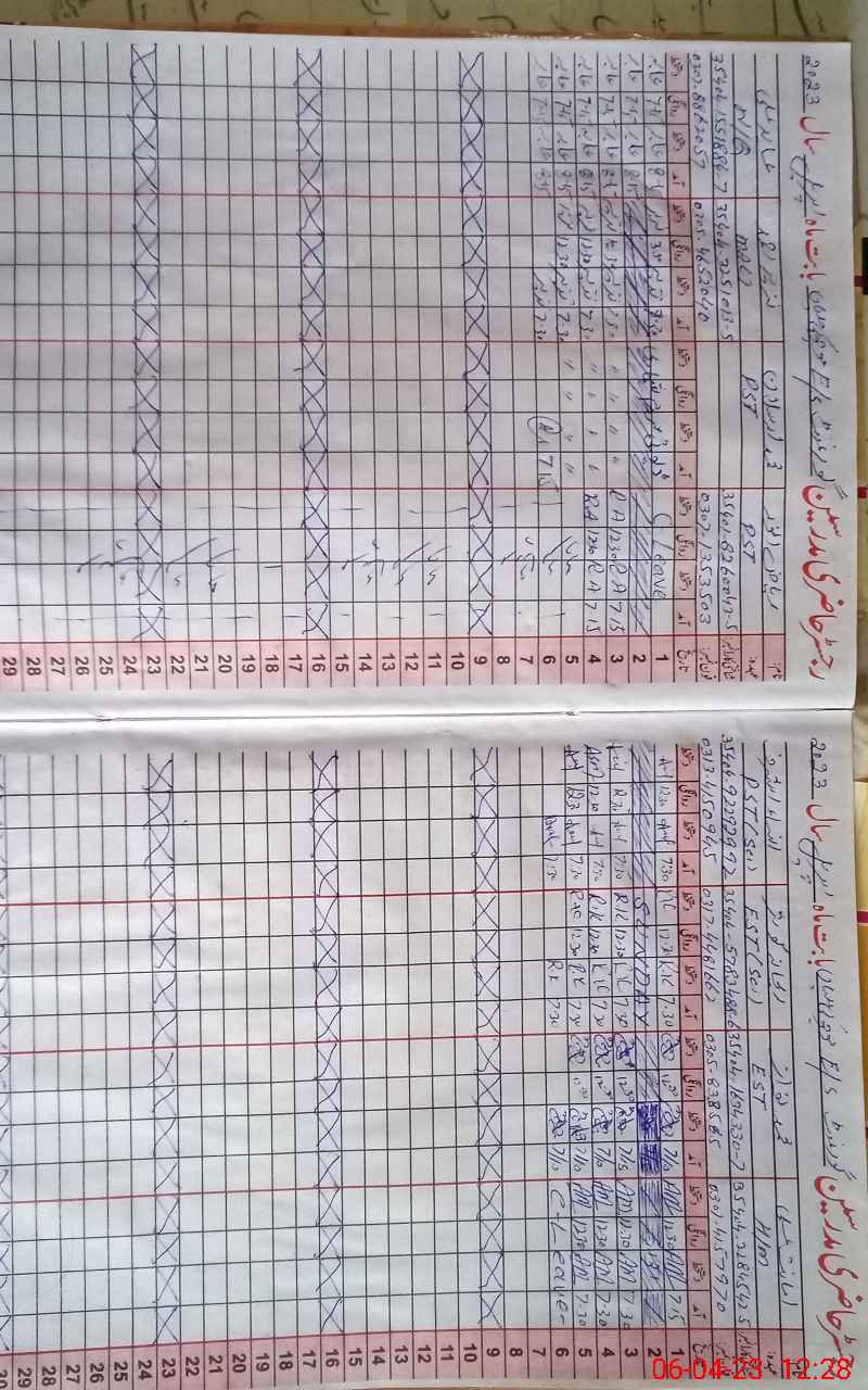 | CNIC | Full Name | Designation | R/C | Absence During Last Calender Month |